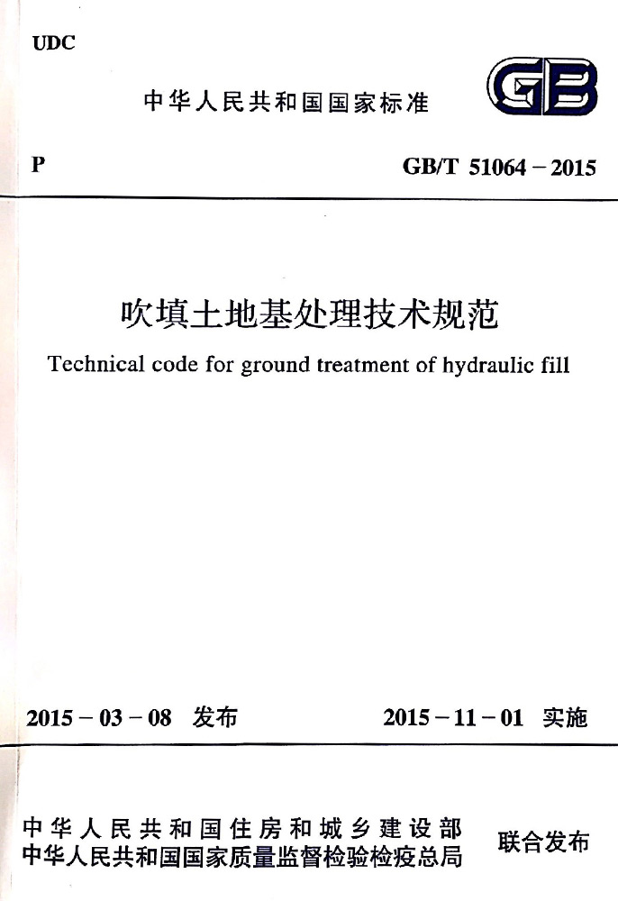 由中华人民共和国住房和城乡建设部、国家质量监督检验检疫总局联合发布的首个固化土相关国家标准《GB/T 51064-2015吹填土地基处理技术规范》已于2015年11月1日正式开始实施,规范内容涵盖固化法的一般规定以及设计、施工、质量检验等各环节,为吹填土地基的固化处理提供了可靠依据。