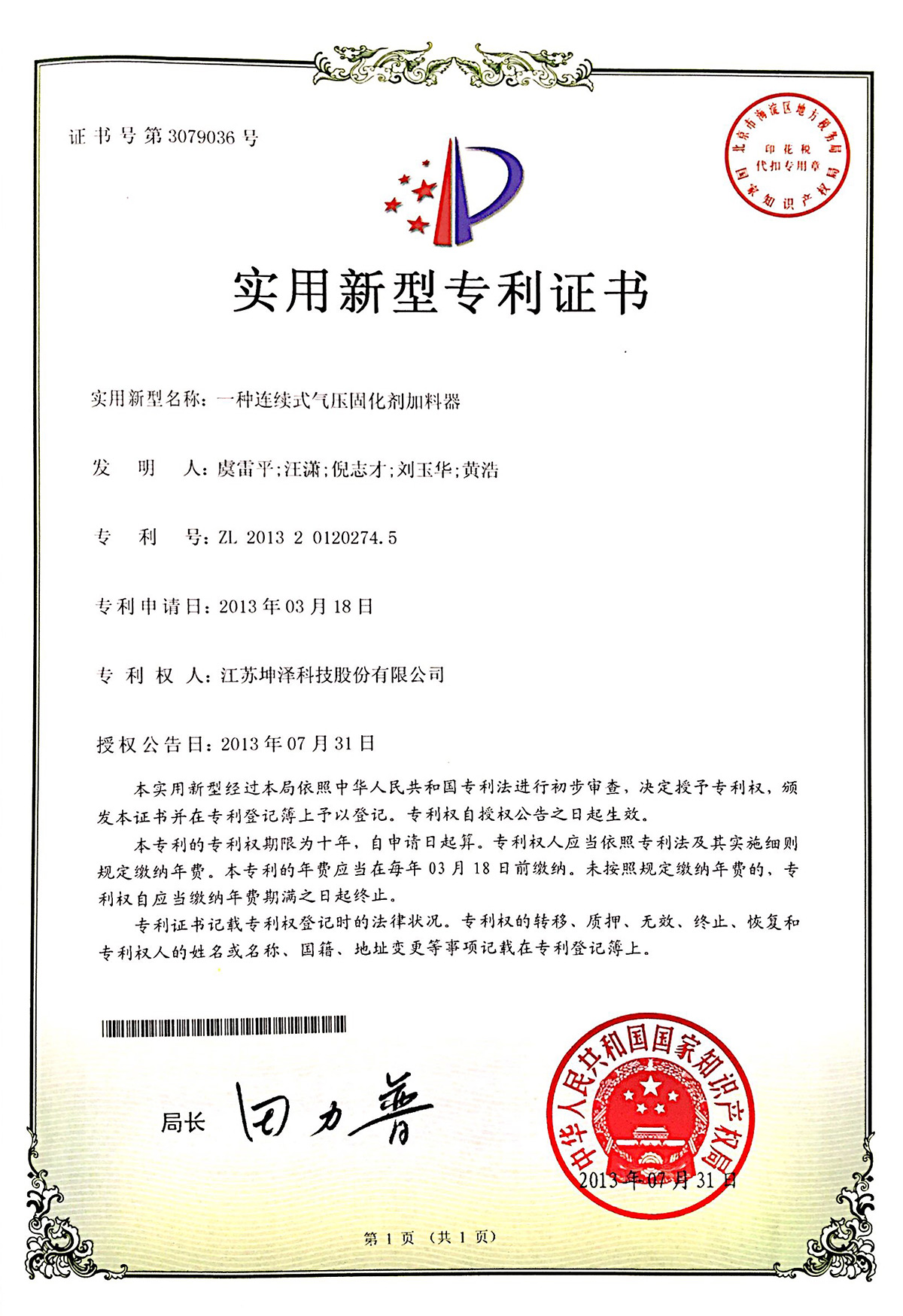 专利号:ZL2013201202745